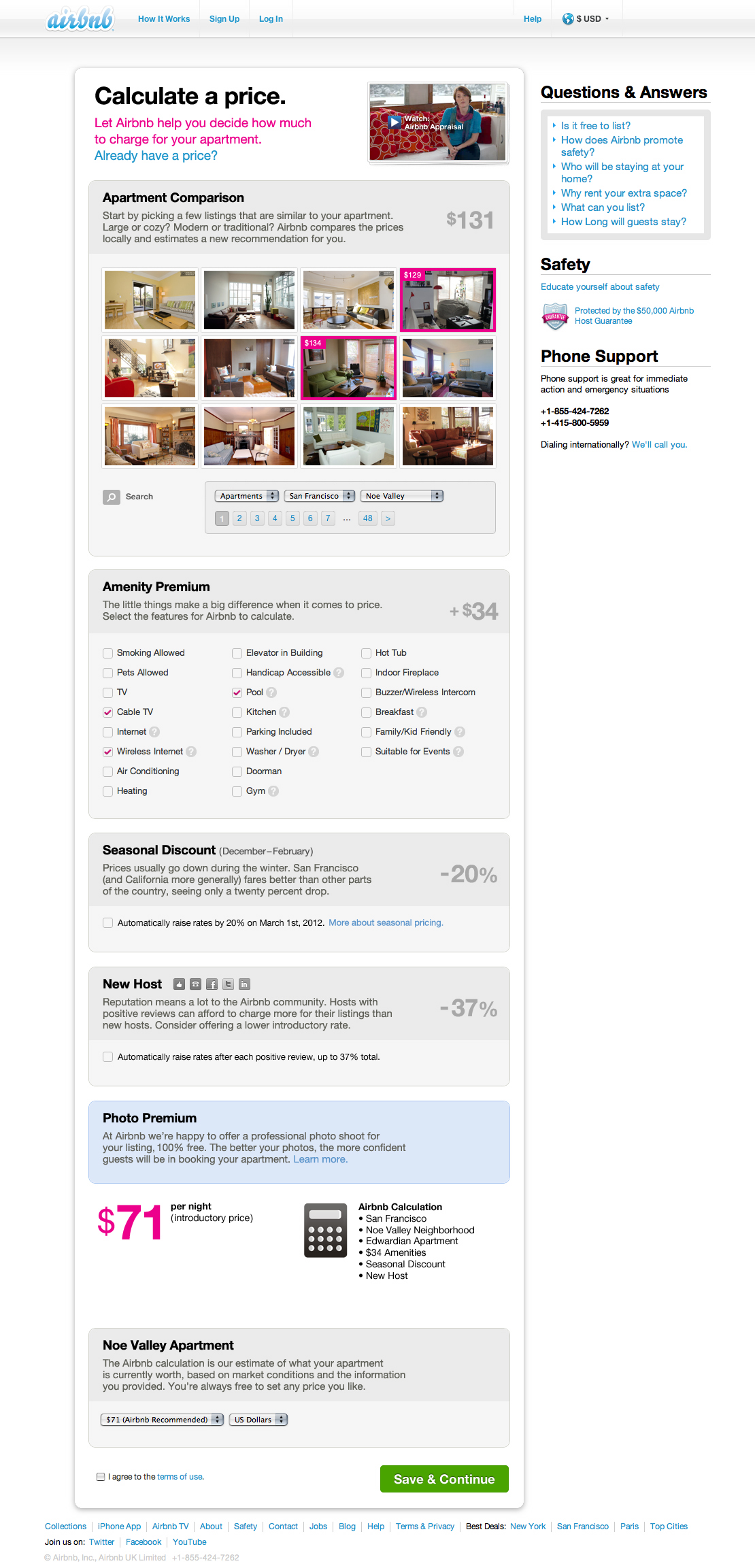 The most sophisticated users browsed nearby listings in order to formulate their price. Some also recognized fluctuations based on the season and other popular events. My response was to formalize these tactics and make the variables clear.Starting from a common pool of other listings in the same city or neighborhood, users could select photos that most closely matched their own listing. The interface calculated a price based on these matches and then adjusted the price based on individual amenities such as Wi-Fi or parking.